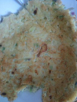 每次一勺 放入油锅摊平煎熟 两面发黄即可