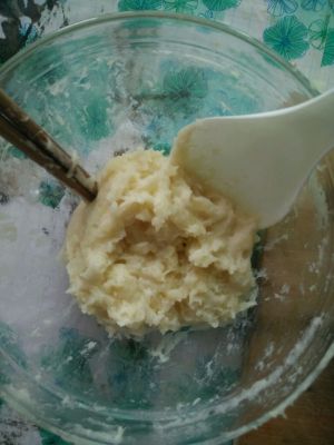 土豆蒸熟搅成泥,加入面粉,白糖,盐,搅拌均匀