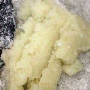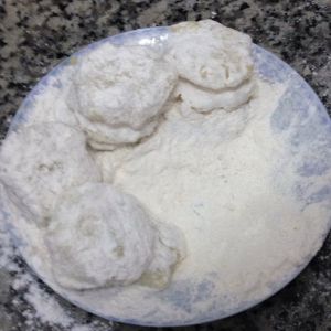 将玉米淀粉少量多次的加入到土豆泥中,每次均需搅拌均匀。加至能成团,不黏手状态。