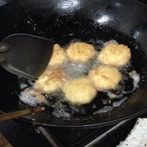 锅内烧宽油,油温6成热时下锅炸,全程小火,用筷子进行翻面。当两面微微发黄,并且两面鼓起,即可出锅。待全部炸完过后,升高油温至9成热,复炸一遍,时间大概10秒左右。