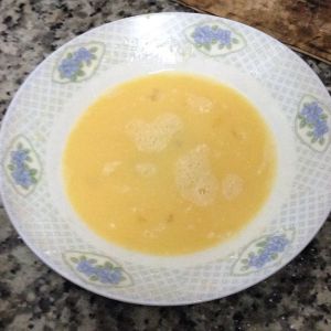 鸡蛋打散加入细砂糖、盐、牛奶拌匀。