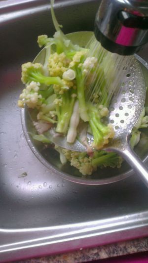 水开后,放入西兰花,滴入几滴油,这样西兰花就不会变黄。水开马上捞出西兰花。