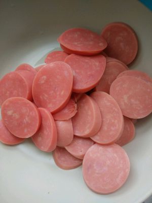 五花肉带皮切薄片,这时说个小窍门,新鲜的肉不好切均匀的片,可以放在冰箱里速冻,待能定型且轻松下刀时再切,就非常轻松啦;大蒜对切两半,姜切丝,葱切段;