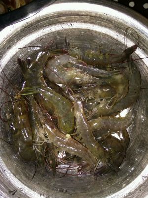跟火锅丸子一起焯水,海虾剪掉虾须备用