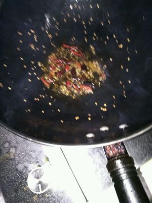 锅内留底油,放进花椒辣椒扁一下在放豆瓣酱划散放葱姜翻翻