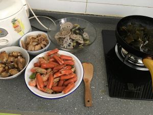 一些个头较大或者难熟的食物,需要提前水煮至八分熟或者下锅炸至八分熟。