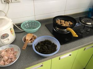 材料全部用水绰下 每样都用平底锅煎下 五花肉 鸡翅要把油煎出