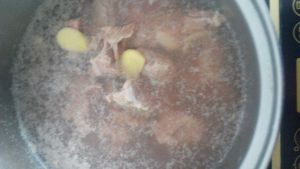 小排洗干净放姜,放一勺料酒、放一勺盐用水煮10分钟