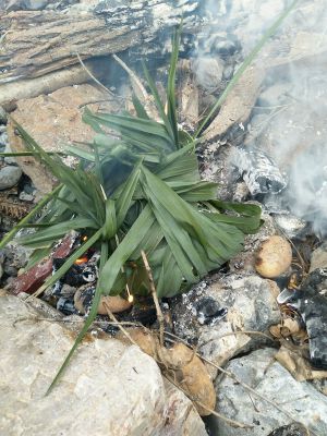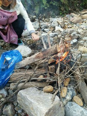 放入已经烧好的石堆里面用碳火盖好2个多小时左右