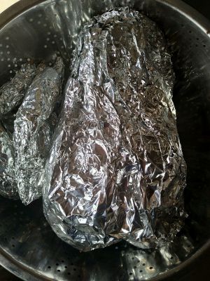 用锡箔纸包紧,尽量多包几层,以免烤糊