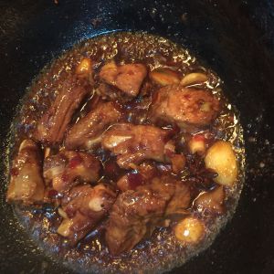 炒糖!忘了拍照,用炸排骨的油炒糖,没有冰糖就用了家里的沙糖,油少点,把糖炒化了加水!