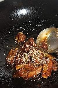 5 收汁出锅,(把剩下的柠檬摆在盘下)然后上芝麻(芝麻我事先炒过,更香)