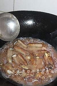 放入煮排骨的汤200克,将炸好的排骨也放进去