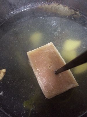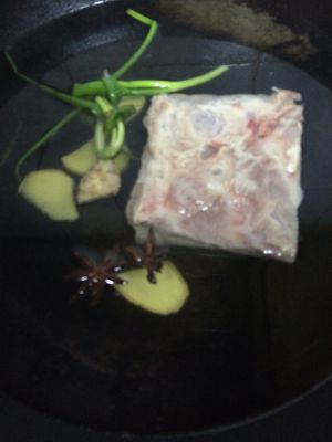 第一步凉水煮肉放适量花椒大料,半棵大葱,几片姜!