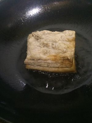 起一锅油,七成热时放入腌好的五花肉,煎至金黄,捞出