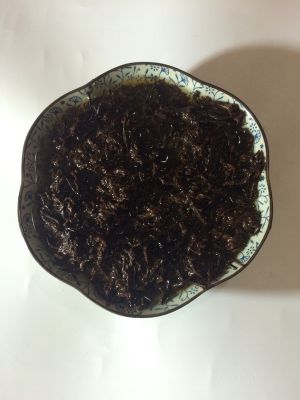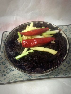 油锅中剩少许油,放入泡好的梅干菜,炒加料酒、生抽、白糖,翻炒至香气浓郁出锅备用。