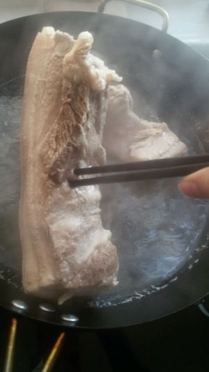 3. 把五花肉放进去煮30分钟,然后捞出沥干。