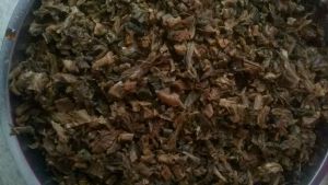 再放入腌制好的梅菜,梅菜里面放一点点酱油和糖