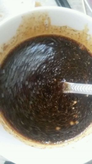 4. 调料汁:取一小碗调入高汤、耗油、精盐、白糖、生抽、老抽、鸡精。