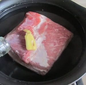 锅中准备小半锅油烧热,放入煮好的肉,肉皮朝下