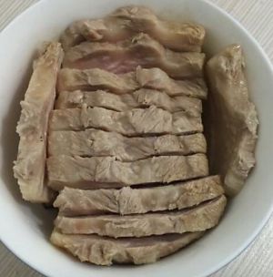 水开后转小焖15-20分钟,取出放凉。 我通常会前一天做这项工作。