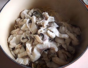 放在鱼骨上面,再在鱼肉上面码上一部分干辣椒。