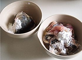 鱼头、鱼骨、鱼尾放入一个碗内。鱼肉放入另外一个碗内。分别加入3g盐,一个蛋清、15ml料酒,生淀粉15g。