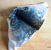 鱼头对半切开备用。