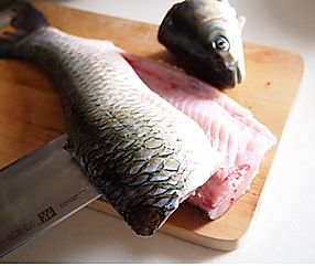切掉鱼头,用刀沿着鱼骨一侧,片出鱼肉。