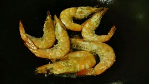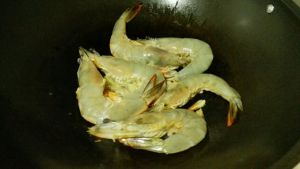 将虾入锅煎至有香味
