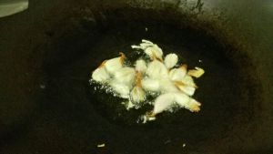 把虾放入油锅。