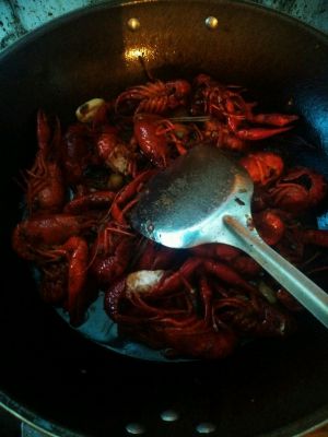 倒入虾,改为大火,快速翻炒,避免糊啦,两面变红一分钟的时候,改为中火将味极鲜,醋,白糖放入,继续翻炒几下倒入少许水