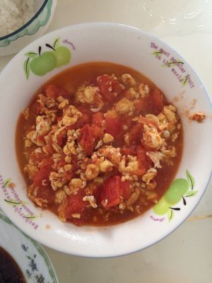锅内留底油,加葱末蒜末爆香,加西红柿,翻炒。个人喜欢翻炒至化成浓汤。加入炒好的鸡蛋。加入适量盐,糖调味,盛盘。