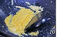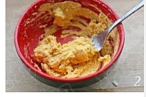咸蛋煮熟取其黄,加少量油、鸡精、淀粉碾合成泥;