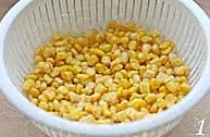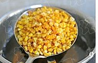 锅中放多些油,油温7成热时,下入沾好干淀粉的玉米粒炸至金黄后,起锅沥油。