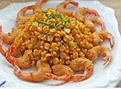 炒到起泡沫加入炸好的玉米和虾,根据自己口味酌量加一勺白糖,炒匀起锅