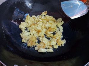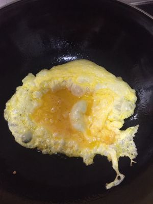 锅内放油,油热后倒入打好的鸡蛋液,快速翻炒