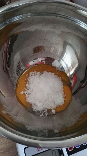 准备好种配料,鸡蛋取蛋黄,白砂糖称重。