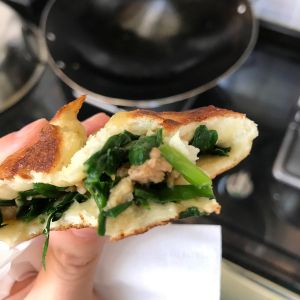 还没洗锅等不及要来一个,卡哧卡哧,表面焦脆煎脆的,里面很松软,一咬开韭菜的香气扑鼻而来,好次好次好次