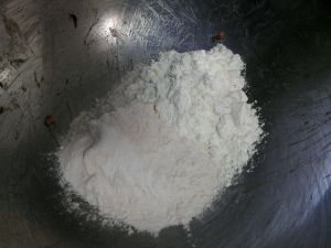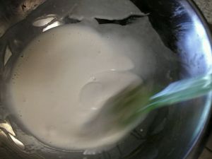 慢慢加水,调成浓稠的面糊,醒30分钟,让泡打粉慢慢起作用