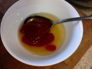 用番茄酱调汁,放入适量糖 和少量淀粉,调匀备用。