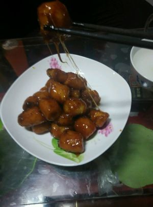 最后拔丝成功,盛装出盘,美味