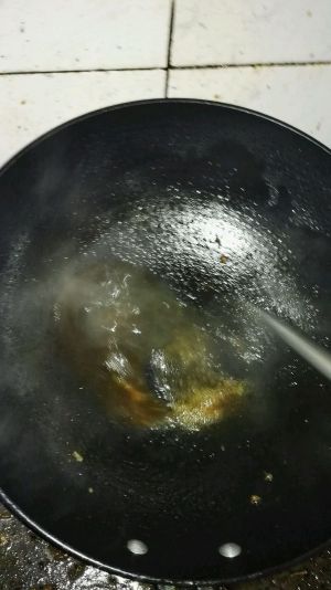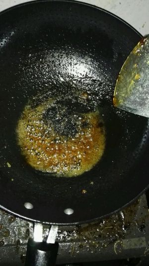 加入少许油,糖和水,把糖煮化。