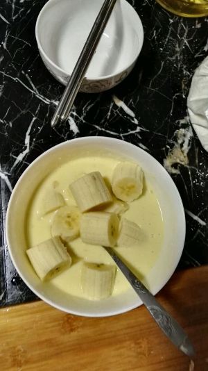 放淀粉香蕉鸡蛋…鸡蛋打均匀
