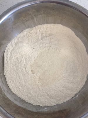 100克面粉,加入1克酵母、5克白糖、温水拌均;