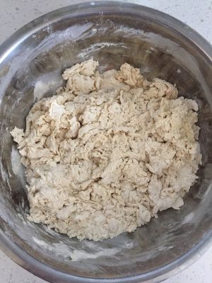 温水溶好酵母粉,和面,揉得盆光、面光、手光,待其发酵3个小时