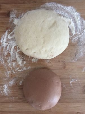 面发好后,加少许面粉和一点苏打粉(这个只能一丁点地加)揉,闻到没有酸味可以好好地揉。然后做成自己想做的模型。