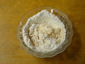 紫薯洗净去皮,切块蒸熟。我就买的一小兜紫薯,都蒸了,具体用了多少我并没有称重,如果紫薯多了,可以多增加一点奶粉量和面粉量就好。