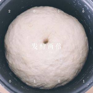 2.发酵至2倍大,我大概发酵了一个小时多。面团撕开会有很多气孔,就发酵好了。