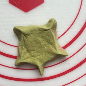 组合在一起,其中一个角在正前,其余包下来整理好,顶端捏出蒂,小刀压出褶皱。醒发20分钟,上锅大火烧开中火20分钟,关火焖五分钟后揭盖